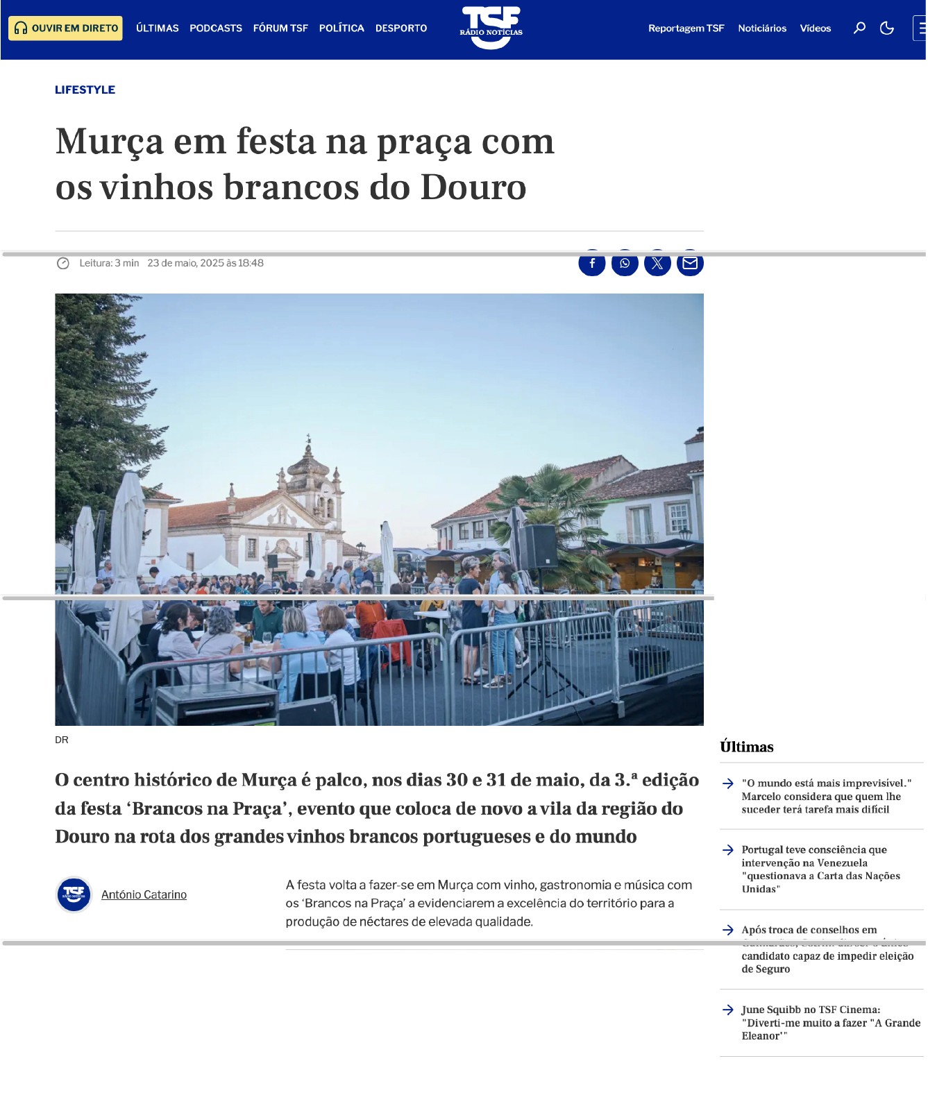 Festa de Vinhos Brancos na Praça is a seasonal cultural and gastronomic event held in the historic centre of Murça, celebrating the distinct character and production of Douro white wines within the context of local tradition and community life.