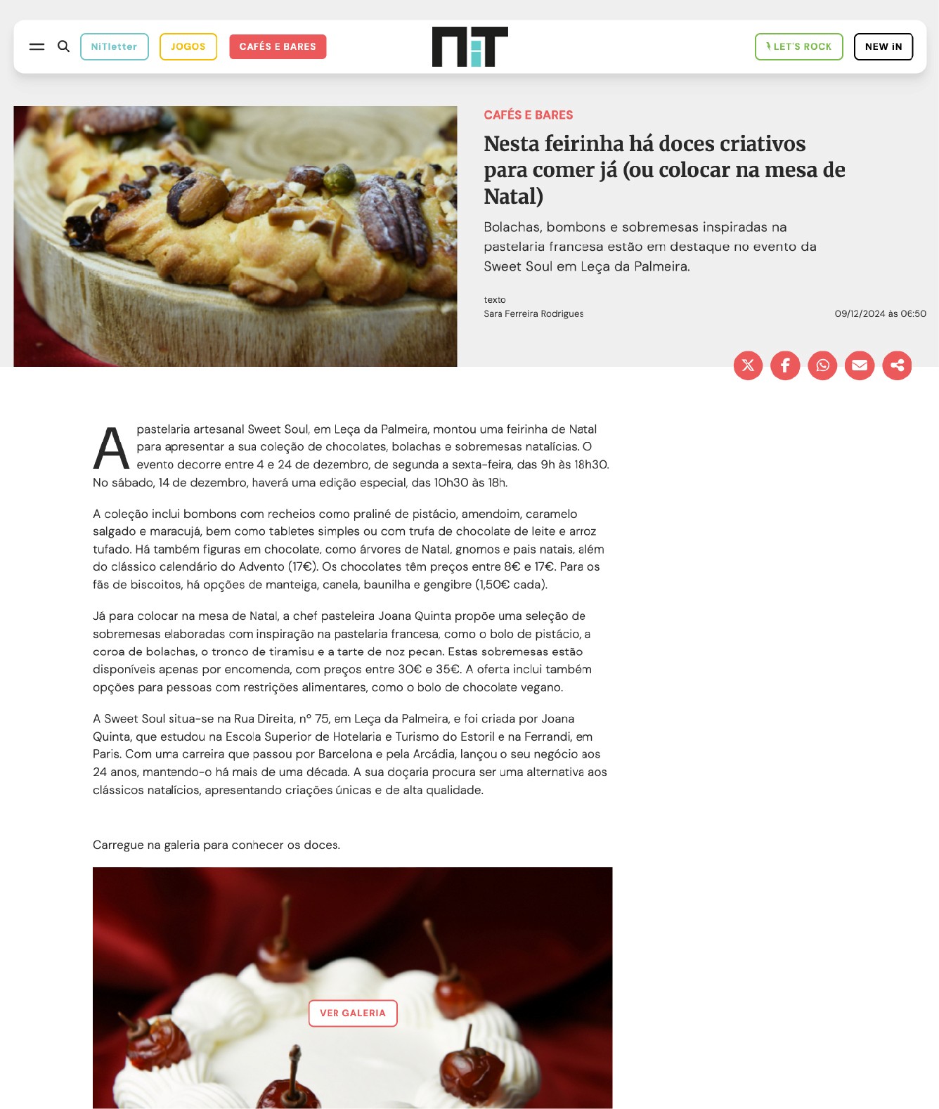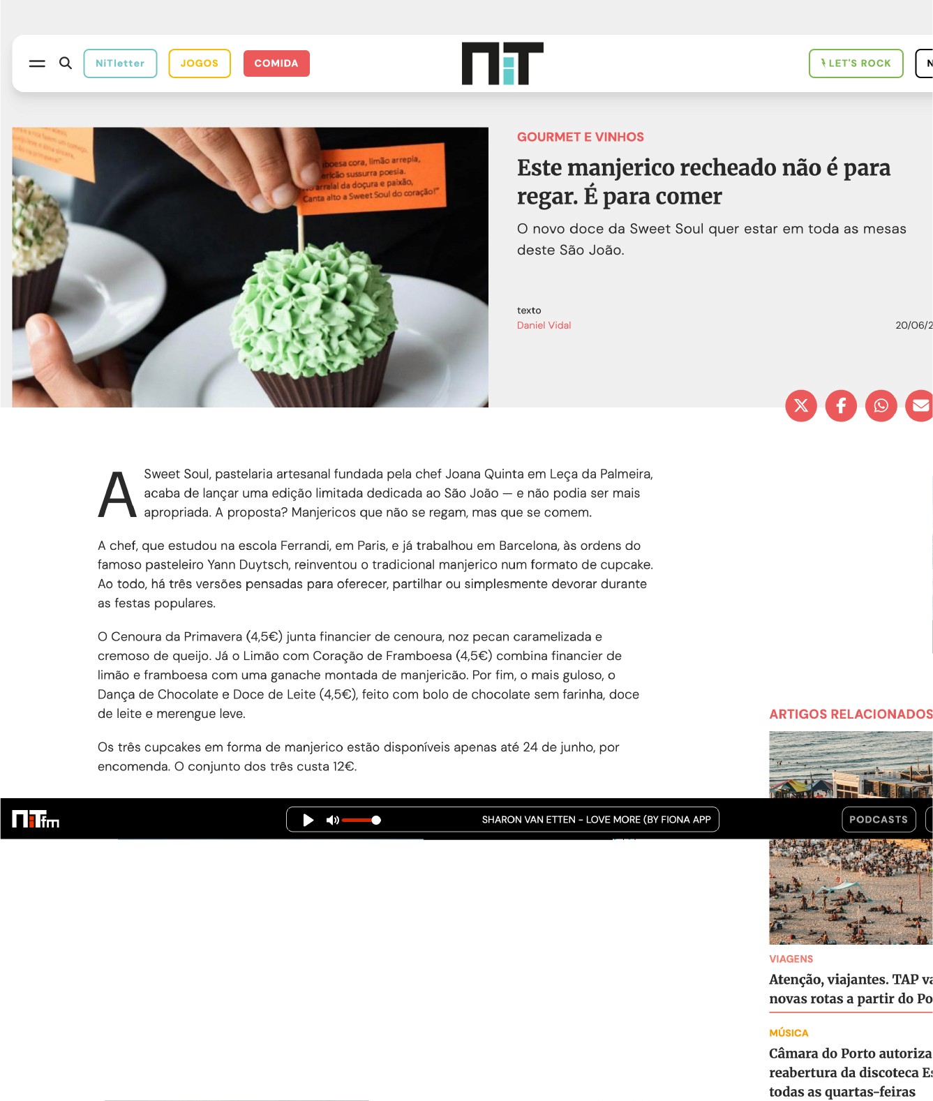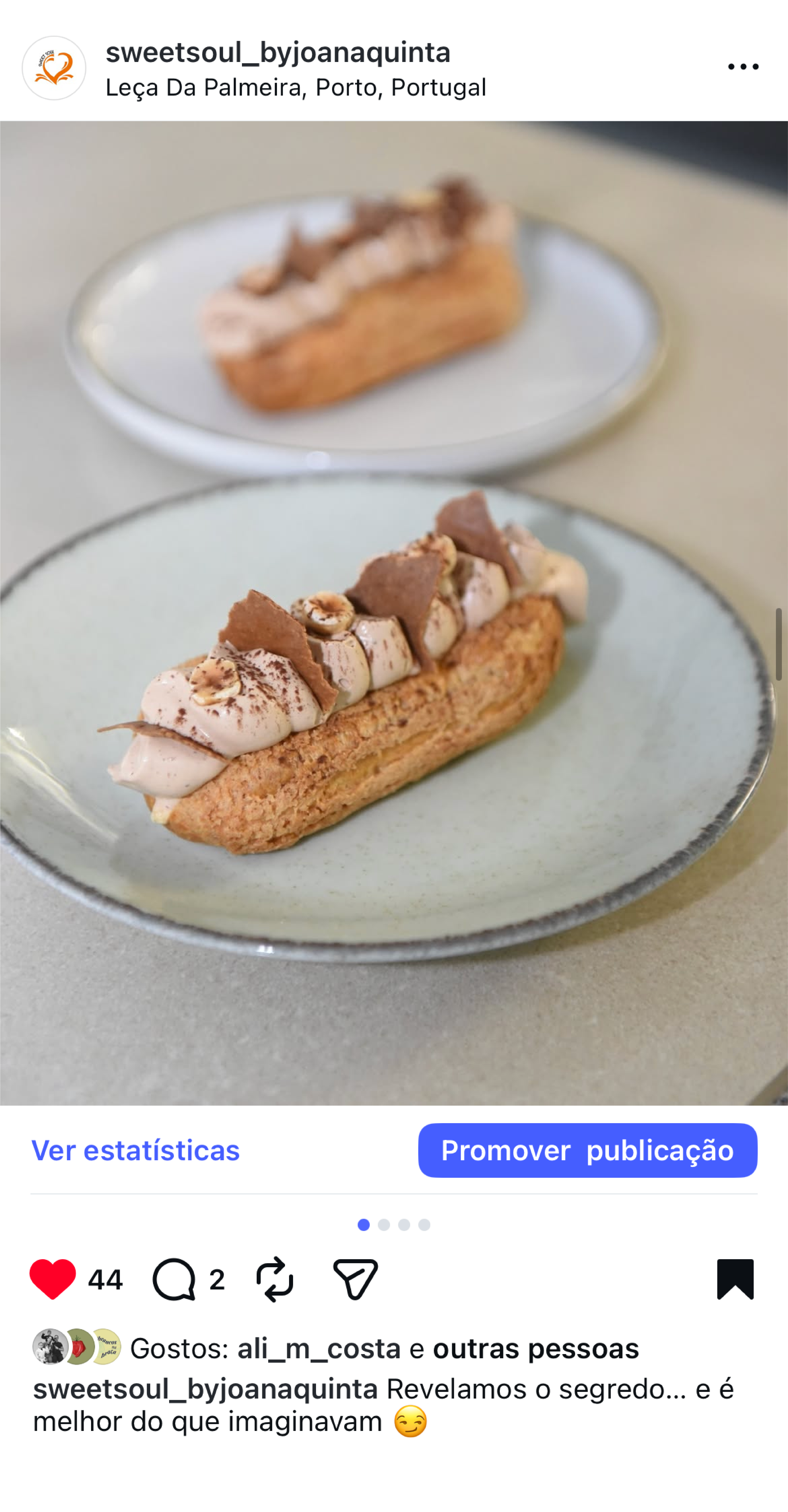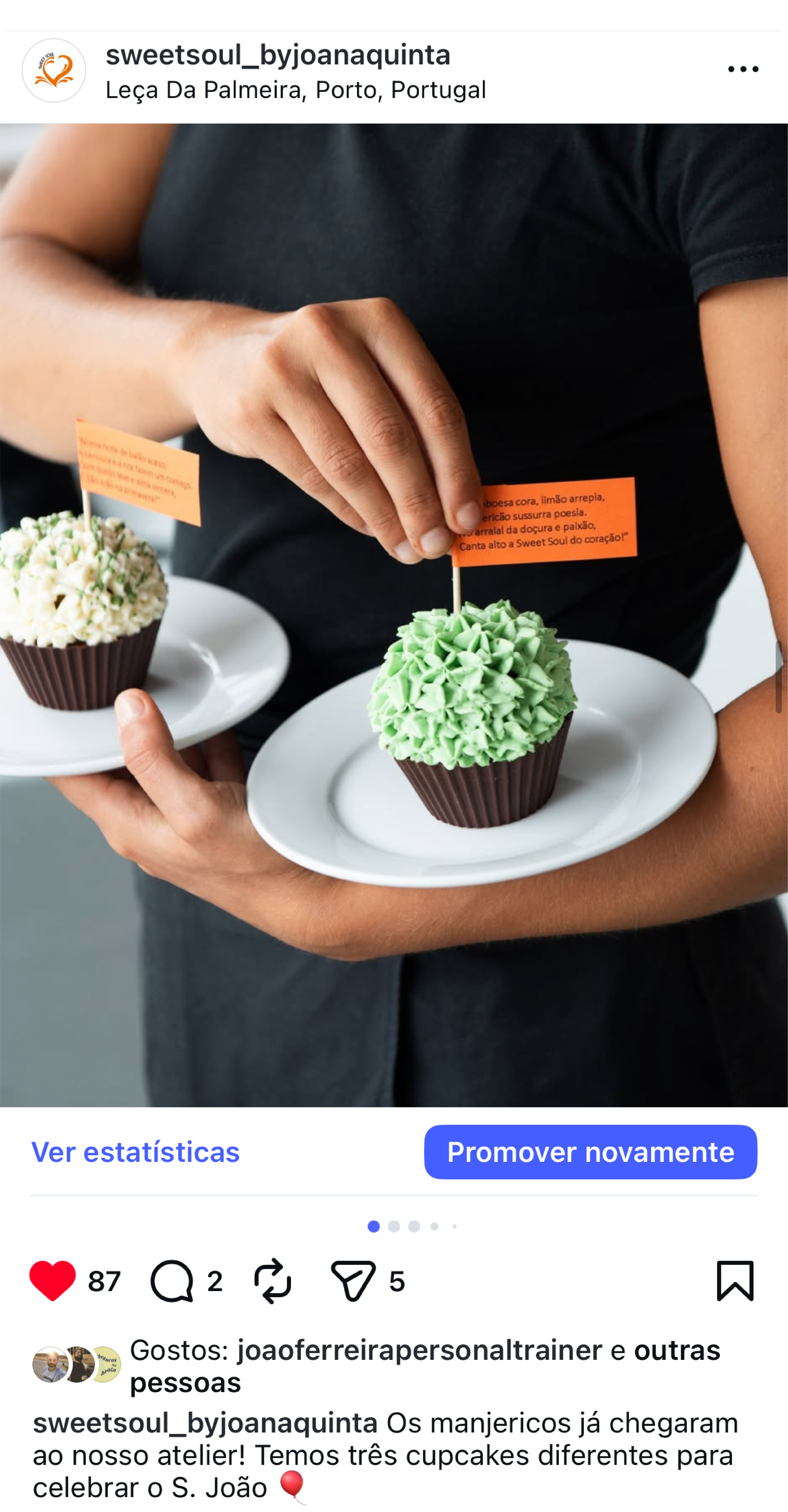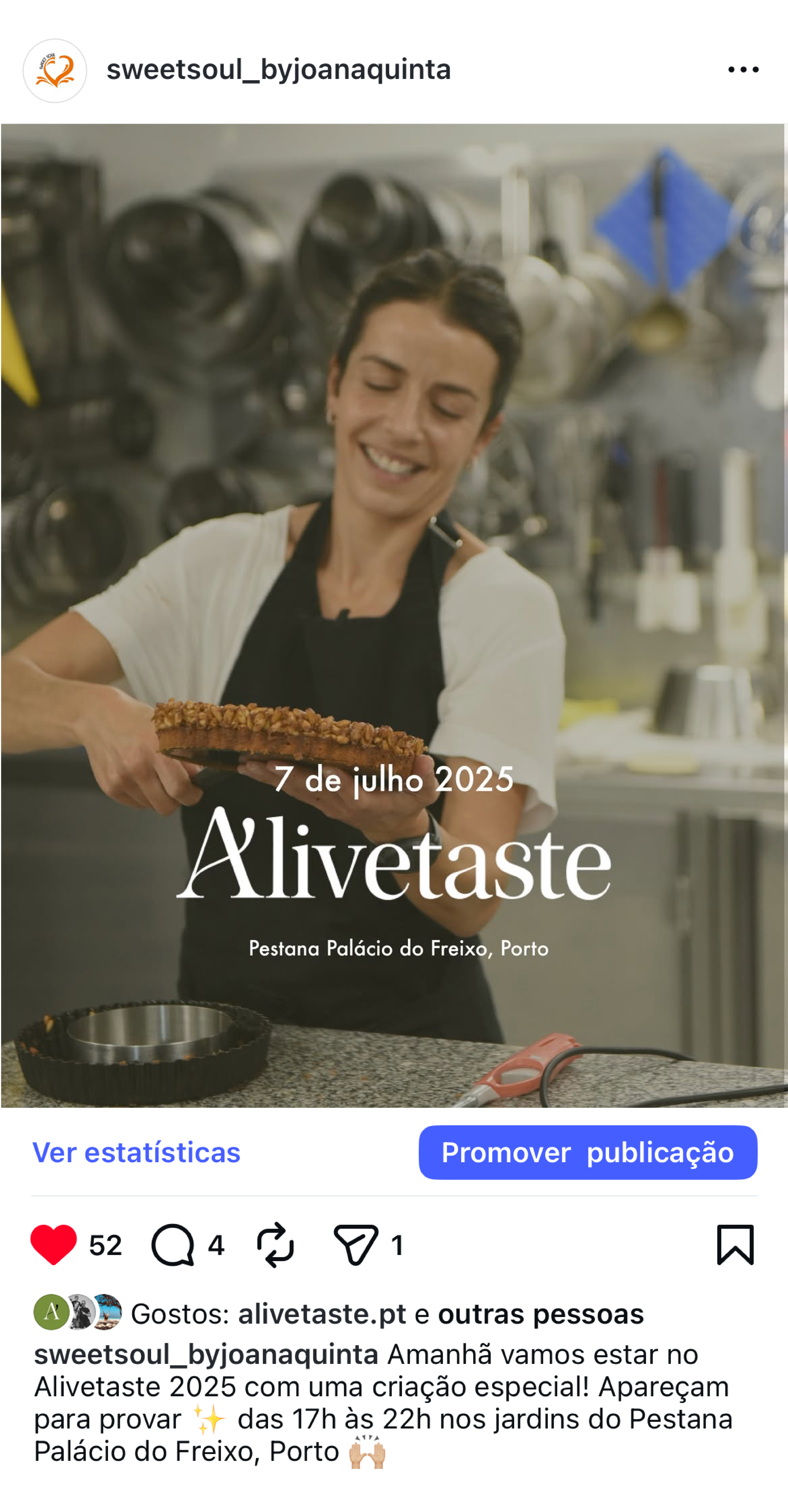 Sweet Soul is an artisanal pastry project led by pastry chef Joana Quinta, focused on handcrafted desserts and seasonal creations.