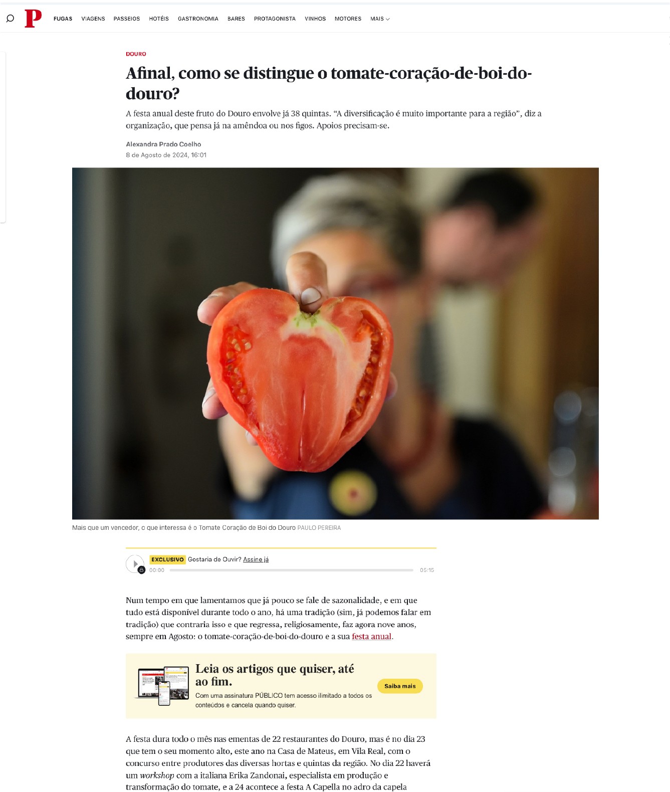 Tomate Coração de Boi do Douro (TCBD) is an initiative dedicated to promoting the Douro Valley’s Oxheart Tomato as both as distinctive agricultural product and an expression of local identity.